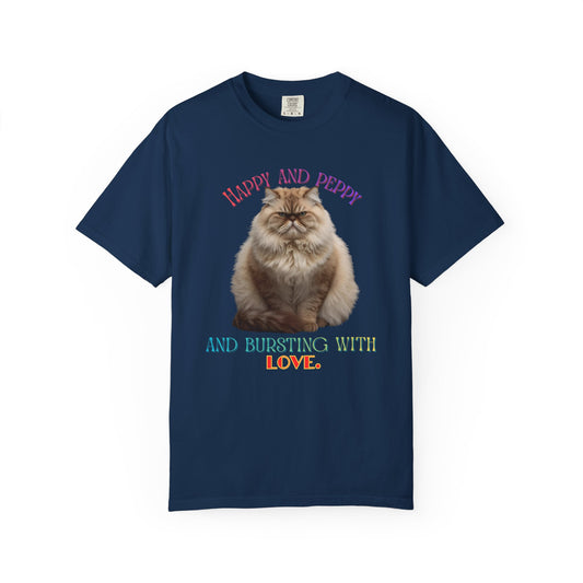 Comfort Colors “Happy and Peppy and Bursting With Love” Cat T-Shirt