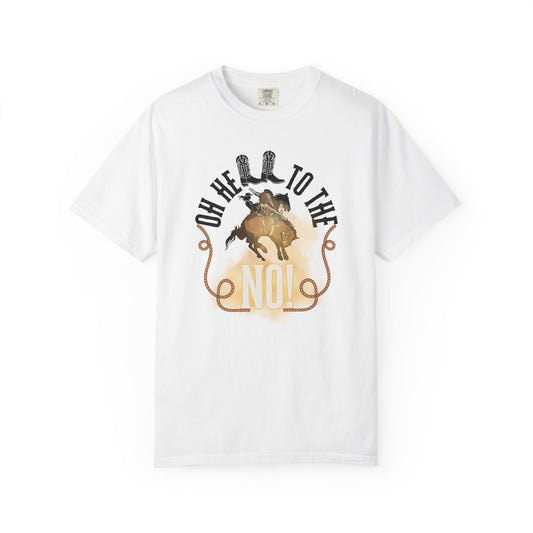 Comfort Colors T-Shirt — "Oh Hell to the No!" Rodeo Bronco Riding Graphic Tee