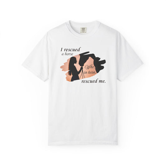 Comfort Colors Horse Rescue T-Shirt — "I rescued a horse. Who, in turn, rescued me." Graphic Tee