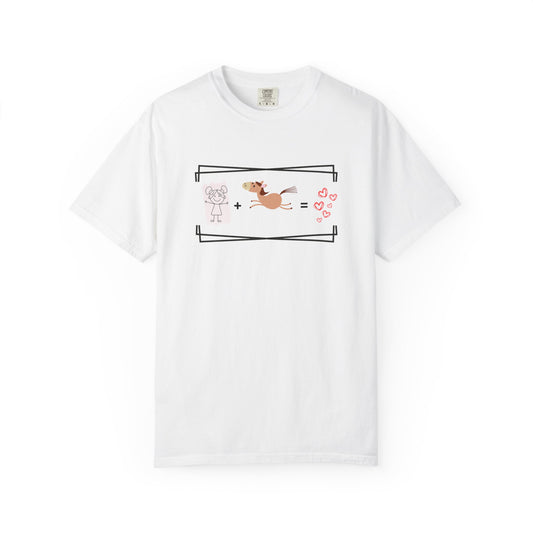 Comfort Colors T-Shirt — Cute Horse + Girl Equation Graphic Tee (Love Hearts)