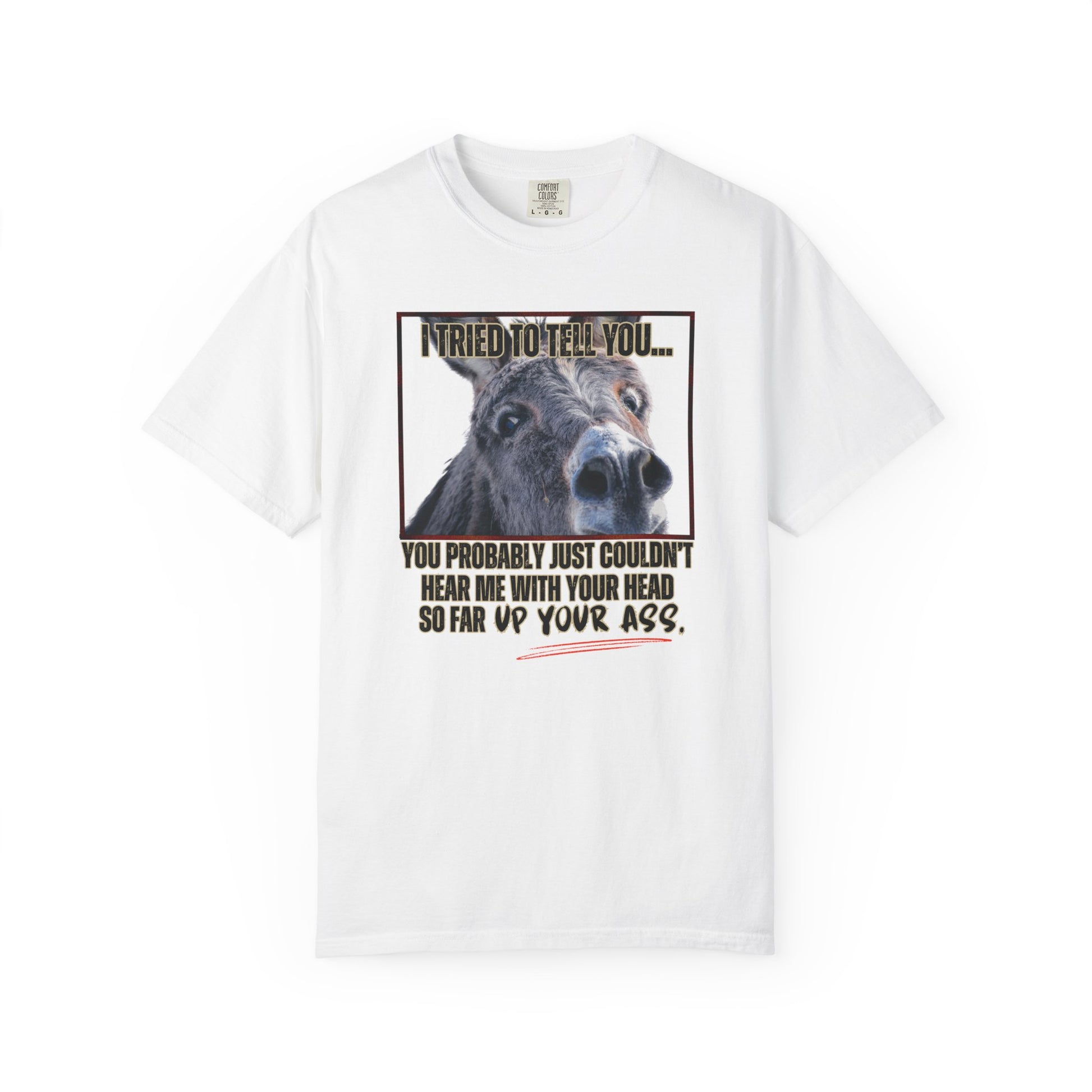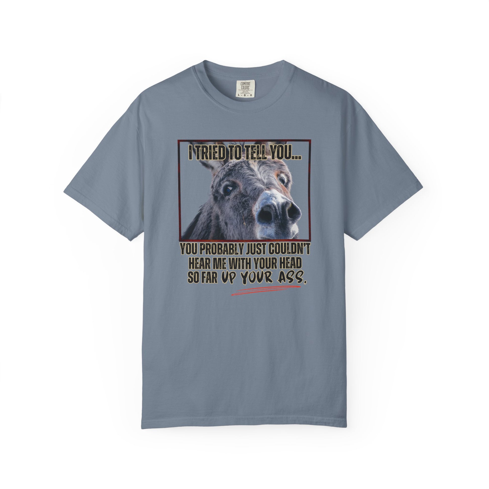 Comfort Colors Donkey Graphic T-Shirt — "I Tried to Tell You... You Probably Just Couldn't Hear Me" Funny Farmer Tee