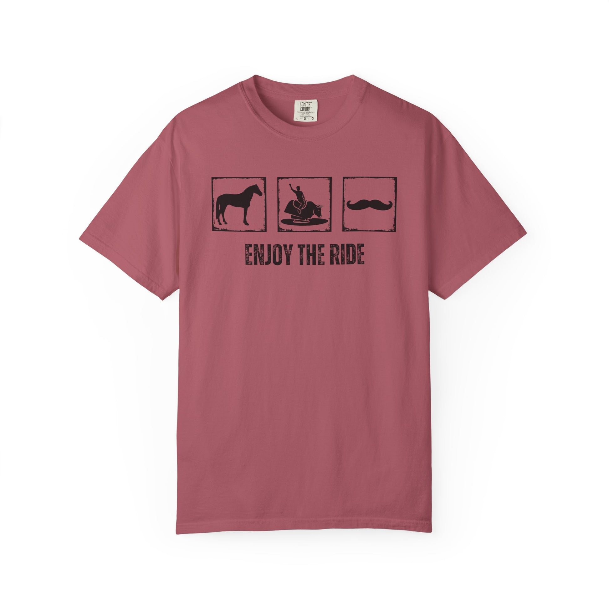 "Enjoy the Ride" — Horse, Mechanical Bull & Mustache Comfort Colors T-shirt